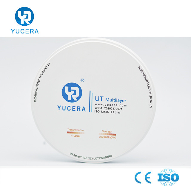 Mehrschichtiges Zirkoniumdioxid YUCERA UT blockiert Hersteller Dental Lab Materials für zahnmedizinische Fräsmaschine